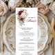The hand-painted floral artwork showcases bold burgundy roses paired with delicate white blooms, accented by gold leaf details for a touch of luxury. Whether you’re planning a romantic boho wedding, rustic barn celebration, vineyard dinner, autumn reception, or elegant winter wedding, this menu adds beauty and style to every place setting.