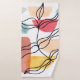 Modern Bohemian pattern in watercolor with neutral colours of red, blue, apricot and terracotta with a leaf design in black.