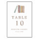 Charming wedding table number cards perfect for a books or library themed wedding. The design features a watercolor illustration of books in neutral earth tone colours. Add table number and personalize with your details in dark muted brown.