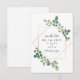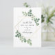 An elegant wedding r.s.v.p. invitation featuring a watercolor inspired botanical greenery design around a geometric frame with black text.