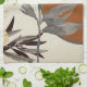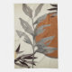 Modern kitchen towel features an artistic watercolor botanical print in an orange and gray color palette with a watercolor leaf and a geometric circle composition with shades of orange and grey with black and gold accents on a linen beige background. Add a touch of elegance to your kitchen with this stylish botanical print kitchen towel. A stylish modern addition to your kitchen towel collection, thoughtful modern home gift, or a stylish elegant kitchen gift for any occasion.
