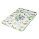 This lovely, personalized, botanical watercolor bath mat features foliage in fresh shades of greens, gold, aqua, and gray. Sprigs of dainty pink and purple wildflowers complete this fresh country design. It has a sage green square in the middle where you can add your choice of initial.