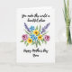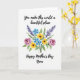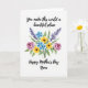 This card features a watercolor-style bouquet centered on a bright white background, arranged like a gentle hug of flowers that feels tender and affectionate ❤️. Soft pink roses sit beside sunny yellow daisy-like blooms with dark centers, creating a cozy, friendly contrast. Small sky-blue florets and slim lavender spikes weave through the cluster, with leafy greens filling the gaps for a natural, layered look. The paint washes and slight color bleeds give the petals a soft, airy edge, like they were brushed on with calm care. At the top, a thin, flowing line of text in dark gray reads, “You make this world a beautiful place,” hovering above the bouquet. Near the bottom, a second line in the same dark tone says, “Happy Mother’s Day Nana,” placed beneath the stems with comfortable spacing 🌼. The overall layout feels balanced, with the words framing the flowers without crowding them. The bouquet shows pink roses, yellow daisy-like flowers with dark eyes, blue accents, lavender spikes, and lush green foliage against the white field.
