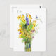 Watercolor bouquet of summer flowers postcard