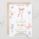 Watercolor Bow Butterfly Dots Baby Shower Invitation