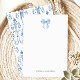 Elevate your personal correspondence with this exquisite custom notecard, a perfect blend of modern elegance and timeless charm. The front of the card features a simple yet sophisticated design with a beautifully hand-painted watercolor blue bow at the top, adding a soft, delicate touch to your messages. Below the bow, a clean, modern font personalizes the stationery with your name, creating a design that is both classic and uniquely yours. Flip the card over to discover an equally stunning back, which features an elegant watercolor damask pattern. This rich pattern, with its soft blue hues and traditional flourishes, provides a luxurious and artistic detail that makes the notecard feel extra special. The harmonious combination of the minimalist front and the detailed back gives your notes a sense of refined style and thoughtful intention, ensuring they leave a lasting impression. This stationery is ideal for thank you notes, personal letters, or any occasion where you want to send a message with a touch of grace and beauty.