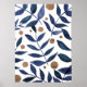 Watercolor branches and berries with indigo and beige motifs. Botanical illustration on art posters.