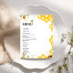 A menu card suitable for a bee-themed baby or bridal shower, birthday. Featuring a watercolor buzzing bee. Personalize with own menu text for brunch, lunch, or dinner.