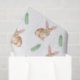 Destei’s watercolor pattern featuring a brown bunny with extra long ears and pink inside them is surrounded by green leaves and botanical foliage. The repeating design creates a woodland inspired look with natural tones and hand painted details. Perfect for spring and Easter, this nature inspired pattern adds a festive and seasonal touch to gift wrapping.