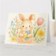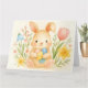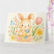 Celebrate the joy of spring with this adorable Easter greeting card featuring a watercolor bunny surrounded by tulips, daffodils, and pastel-colored eggs. With rosy cheeks, soft fur, and a gentle expression, this little rabbit brings warmth and whimsy to your seasonal messages. Perfect for kids, families, and anyone who loves charming woodland art, this card is ideal for Easter baskets, heartfelt notes, or cheerful springtime greetings.