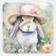 Watercolor Bunny Wearing a New Hat Square Sticker