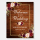 Watercolor Burgundy Floral Wood Print Gold Frame Wedding Welcome Poster Board