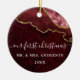 Modern Elegant Watercolor Burgundy and Gold Marble Agate Geode Our First Christmas Wedding Ornament - Photo Back