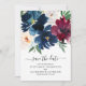 Beautiful watercolor flowers in colors navy, burgundy, white and modern calligraphy script. Perfect for save the date or special event in style. Personalized with your own special text, and use it for the party or event of your choice. Matching items are available in our shop.