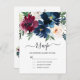 Watercolor Burgundy Navy Flowers Wedding Invitation Postcard