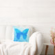 A single, large, watercolor butterfly in soft shades of cobalt, turquoise and sky blue on a pastel gradient background throw pillow
