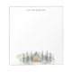 Watercolor Cabin Personalized Notepad features a watercolor illustration of an A-frame cabin, green mountains, and pine trees. Personalize with your name.