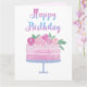 Watercolor Cake and Pink Roses Birthday Card