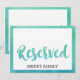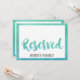 This watercolor calligraphy beach wedding "reserved" sign is perfect for a tropical destination theme wedding. The fun and energetic design features a pretty teal green and aqua blue ombre watercolor script font. Use these cards to reserve chairs or tables at your wedding ceremony or reception. Designed with Care by Miriam at Fresh & Yummy Paperie. For coordinating items, please visit my Zazzle store: