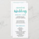 This watercolor calligraphy destination wedding program is perfect for a tropical beach theme wedding. The fun and energetic design features a pretty teal green and aqua blue ombre watercolor script font. Include the name of the bride and groom, the wedding date and location, thank you message, order of service, bridal party and an optional "in loving memory" memorial. Designed with Care by Miriam at Fresh & Yummy Paperie. Please contact me with any design customizations that you need. For coordinating items, please visit my Zazzle store: