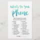 This watercolor calligraphy "guess the right price" game is perfect for a summer boys baby shower. The front of the game card features "guess the right price", and the back of the card features "what's in your phone". The fun and energetic design features a pretty teal green and aqua blue ombre watercolor script font. Personalize the front of the card with the name of the mom-to-be and baby shower date. You can personalize the game questions by clicking the "customize" button.