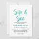 This watercolor calligraphy sip and see invitation card is perfect for a summer boys meet the baby party. The fun and energetic design features a pretty teal green and aqua blue ombre watercolor script font.
