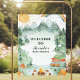 Welcome guests to your baby shower with a beautifully designed Camping Baby Shower Foam Board. Perfect for setting the scene, this display features rustic elements like pine trees, tents, string lights, and a cozy outdoor aesthetic, creating a warm and inviting atmosphere.