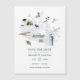North american map themed canada location wedding save the date card featuring famous canadian icons. All elements are entirely customizable.