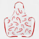 Great color and even though I ordered the kid size, it covers well enough to use during the holidays. I am not a big woman and prefer a shorter apron. I stand 5"6" and the length of the garment goes to mid-thigh. The tie straps fit well at my waist and even though there is no neck strap adjustment, the opening is plenty big enough. I am happy with the size and fit. I am sharing my apron with my 10 year old grandson, too! The color is vibrant and looks good, as shown on the website. The stitching looks strong and reinforced. Photographed is front side and back side of the apron, reinforced straps and coloring. My phone camera may not be the best at showing the details.