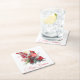 Pretty Christmas paper coaster done in white, with beautiful artwork of a red cardinal and flowers. Personalize the text, with your own holiday greeting.