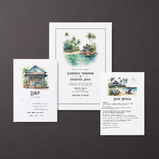 Watercolor Caribbean Destination Wedding Invitation