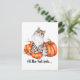 Watercolor Cat and Pumpkins Fall Feels Postcard