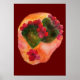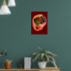 Watercolor Cherry and Green prickly pears Cactus Painting against burgundy background Poster.