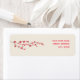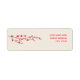 An address label featuring a watercolor inspired illustration of a branch of cherry blossoms at left over a deep off white background. Red text at right. Look for matching wedding invitations, postage, rsvp cards, and save the date cards at Jill's Paperie.