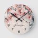 Watercolor Cherry Blossom Modern Girly Script Name Round Clock