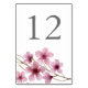 Chic and elegant floral table number cards feature a branch of sweet cherry blossom flowers in pink and plum watercolors, with your table number in medium gray. Design repeats on reverse side. Coordinates with our Cherry Blossoms wedding invitation suite.