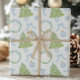 Watercolor Christmas Blue Bow Ginger Jar Trees Wrapping Paper