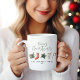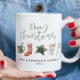 A fun festive mug design featuring watercolor winter favourites - hot chocolate, candy cane, stocking. Merry Christmas in contemporary script font, perfect to celebrate the holiday season. can be edited, part of a collection.