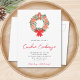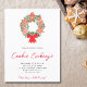 This stylish invitation postcard features a watercolor festive cookie wreath and modern script typography.