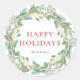 Watercolor Christmas Foliage & Holly Wreath Classic Round Sticker