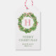 Watercolor Christmas Monogram Striped Bow Wreath Gift Tags