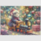 Watercolor Christmas Mouse Riding Train Decoupage Tissue Paper