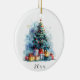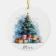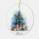 Celebrate a special Christmas with this whimsical watercolor Christmas tree ornament. Customize this ornament with the year on the front and up to 2 messages on the back. A personalized new Christmas ornament each year is a wonderful keepsake for your precious little ones or celebrate your lives together with a Christmas ornament for every year of marriage.