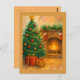 Watercolor Christmas Tree & Cozy Fireplace Holiday Postcard