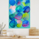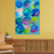 A colorful watercolour abstract art painting by artist Sacha Grossel with cool blue, purple green round circles in a pattern design to show the melding color patterns. Background color is customizable. Soothing and relaxing art.
