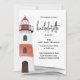 Celebrate in style with this bachelorette party invitation, perfect for a bridal party getaway. Featuring a chic resort theme with seaside charm, this design includes nautical details, a soft watercolor ocean, and a classic lighthouse illustration. The elegant calligraphy script adds a refined touch, making it ideal for a coastal party setting. A beautiful and elegant way to gather the girls for a memorable celebration by the shore.