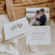 Express your thanks to loved ones after your coastal wedding celebration with these fully customizable folded thank you cards. Design features a group of oyster and pearl illustrations in soft cream and aqua, with "shucks, we're so grateful" beneath. Personalize the inside with a wedding photo, a pre-printed message, and a signature.