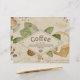 Watercolor coffee themed collage graphic with illustrations of coffee plants, coffee cup and text