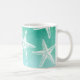 A beautiful watercolor wash in teal with white sea stars accents this unique coffee mug.