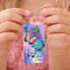 This personalized butterfly keychain features a beautiful watercolor background with vibrant butterflies in shades of turquoise, green, coral, and blue. The soft pastel watercolor design creates a dreamy and artistic accessory perfect for nature lovers, teens, and anyone who appreciates colorful, delicate artwork.